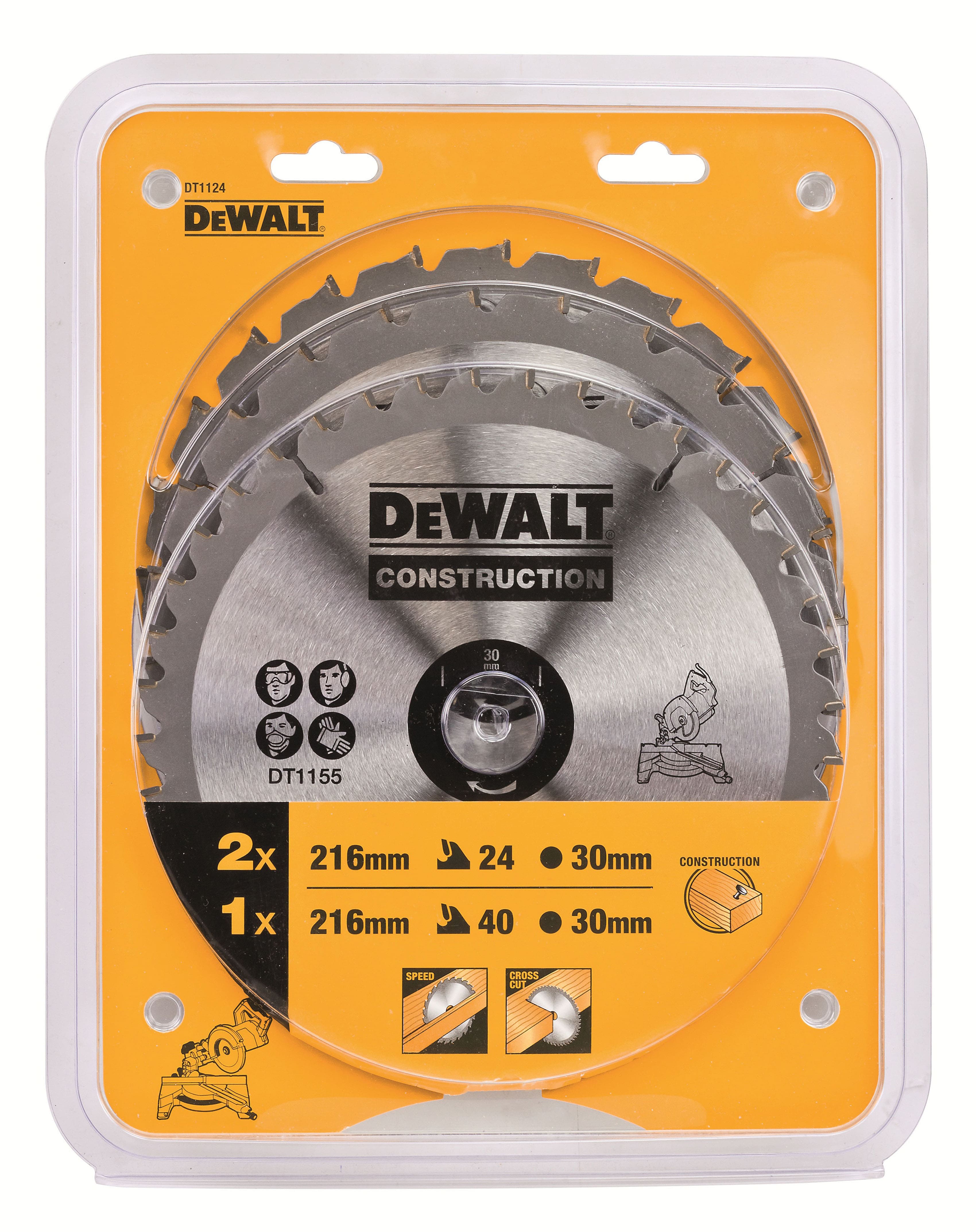 DeWalt DT 1124 Bau-Kreissägeblatt-Set für Stationärsägen 3er Pack