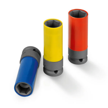 - 3-teiliges Kraftstecknuss-Set mit passender Sicherungsfeder für die Schlüsselweiten 17 mm, 19 mm und 21 mm.