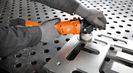 - Hohe Abtragsleistung bei geringem Kraftaufwand und stufenloser Drehzahleinstellung für unterschiedliche Materialien.