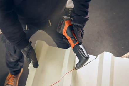 - 66 m Schneidkapazität (in 0,8 mm Blech) mit einer Akku-Ladung (GBA 5 Ah).
