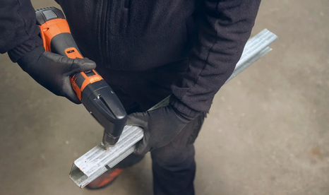 - 66 m Schneidkapazität (in 0,8 mm Blech) mit einer Akku-Ladung (GBA 5 Ah).