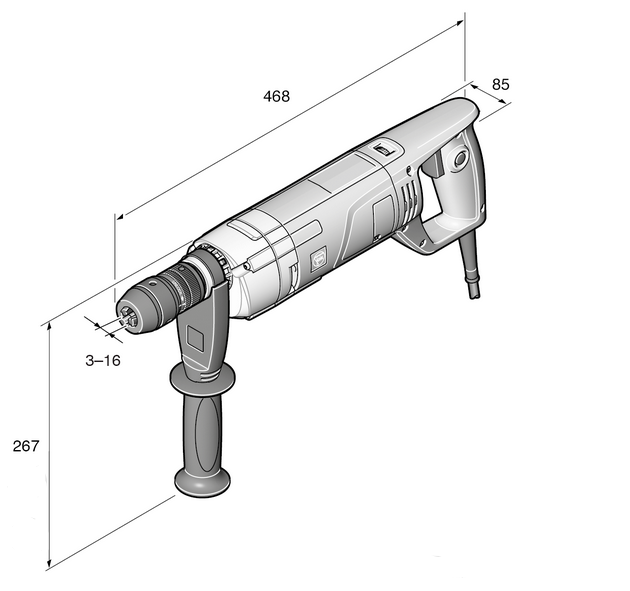 Bohrfutter-Spannweite: 3 - 16 mm