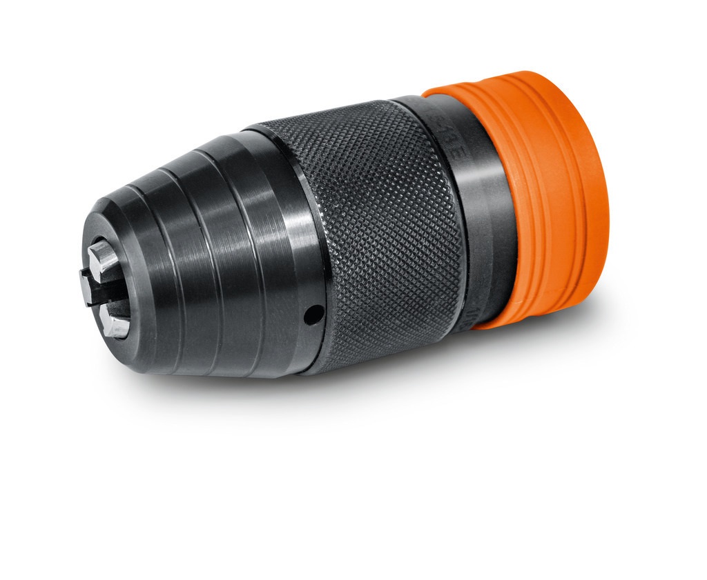 Selbsttätig nachspannendes Flachbacken-Bohrfutter aus Vollmetall von Röhm. Verhindert Durchdrehen von Spiralbohrer und Gewindebohrer. Spannbereich 1,5 - 13 mm. Präzises Arbeiten durch hohe Rundlaufgenauigkeit von bis zu 0,35 mm. Kompatibel mit allen FEIN Akku-Schraubern mit QuickIN / QuickIN MAX Schnittstelle.