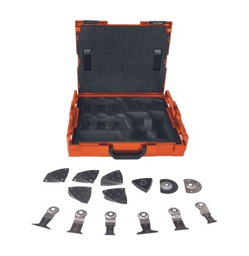 Anwenderset mit umfangreichem FEIN Originalzubehör für den MULTIMASTER in der L-BOXX 102. Perfekt ausgestattet für alle Säge- und Schleifanwendungen. Hochwertige Zubehöre für lange, nachhaltige Einsatzdauer.