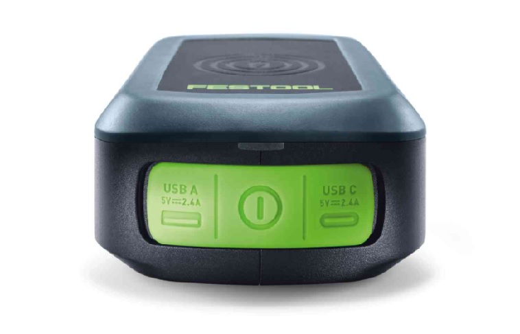 Macht unabhängig: In Kombination mit einem aufgeladenen Festool 18 V Akkupack lädt das Handy auch dann, wenn keine Steckdose in der Nähe ist
