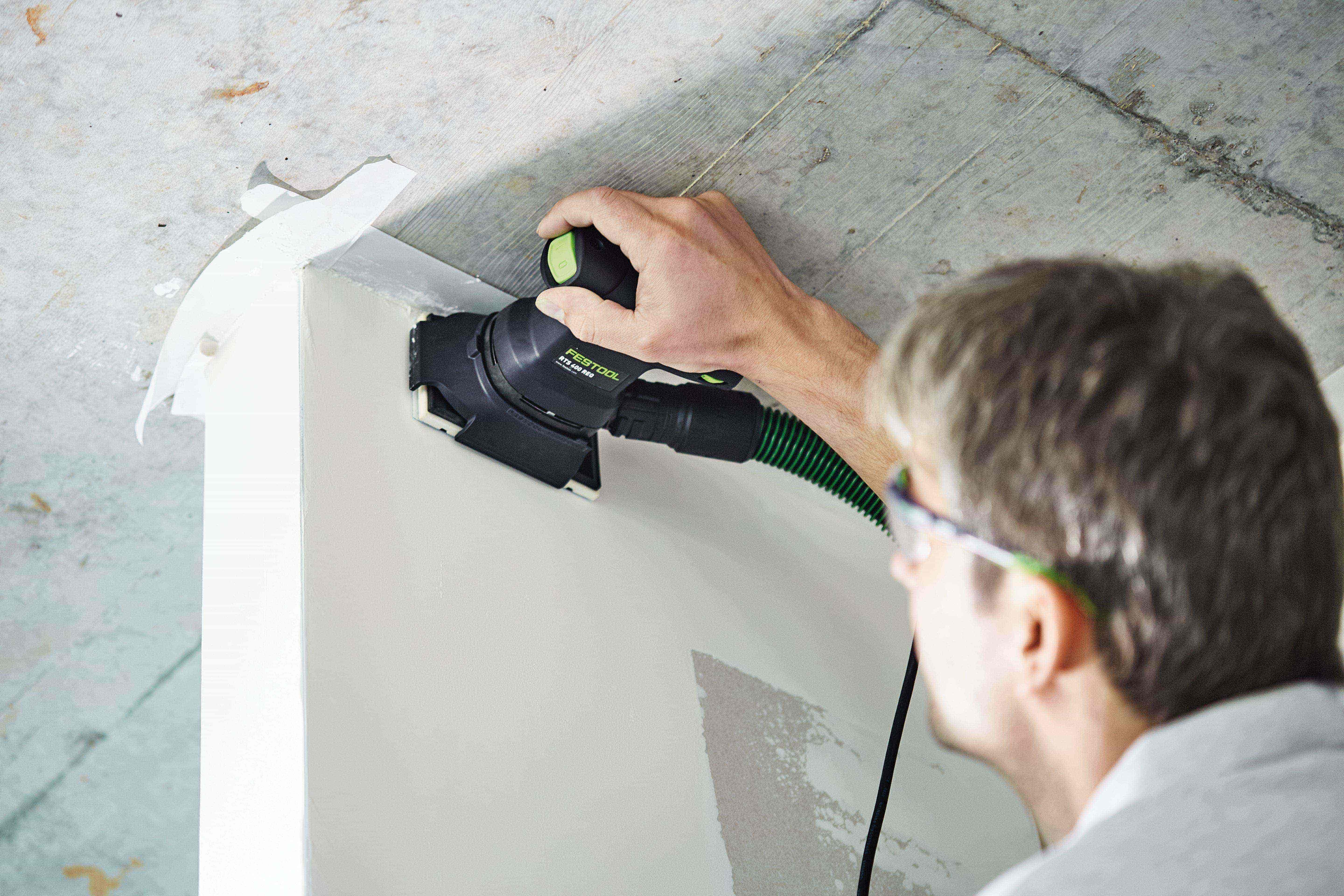 - Gesund und weniger Nacharbeit: In Kombination mit Absaugmobil oder Longlife-Staubfangbeutel und aufsteckbarem PROTECTOR für schonendes Schleifen entlang von Fensterflächen, Rahmen und Füllungen