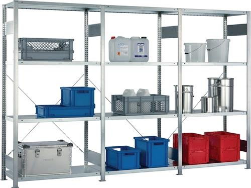 bestehend aus: 1 Grund- und 2 Anbauregalen mit jeweils 4 Fachböden