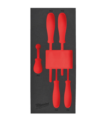 - Strapazierfähige Schaumstoffeinlagen für eine geordnete Aufbewahrung von MILWAUKEE® Werkzeugen und Zubehör