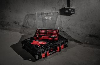 - Lochung zur leichten Fixierung an einer Milwaukee® Werkzeugsicherung bei Arbeiten in der Höhe