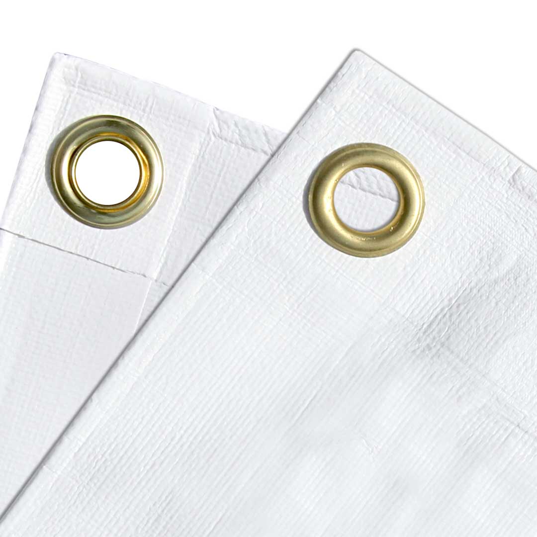 Ausstattung: Eingesäumte PP-Schnur (PP - Polypropylen), umlaufend Messingösen (Innendurchmesser ca. 17 mm) alle halbe Meter